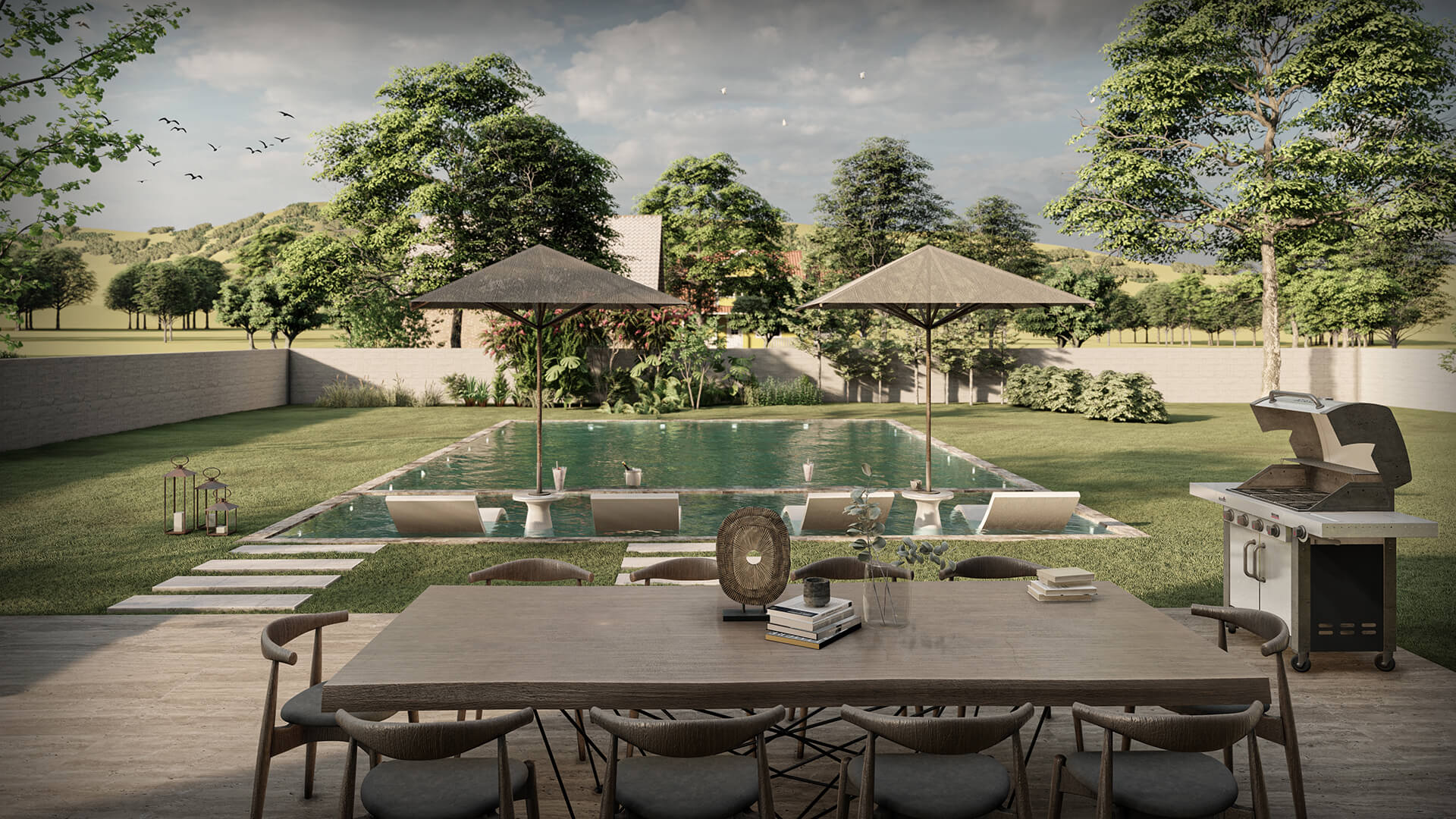 Our team will also add water features (e.g. raised wall) and fire features (e.g. fire pits and BBQ structure) to improve the functionality of your outdoor space.